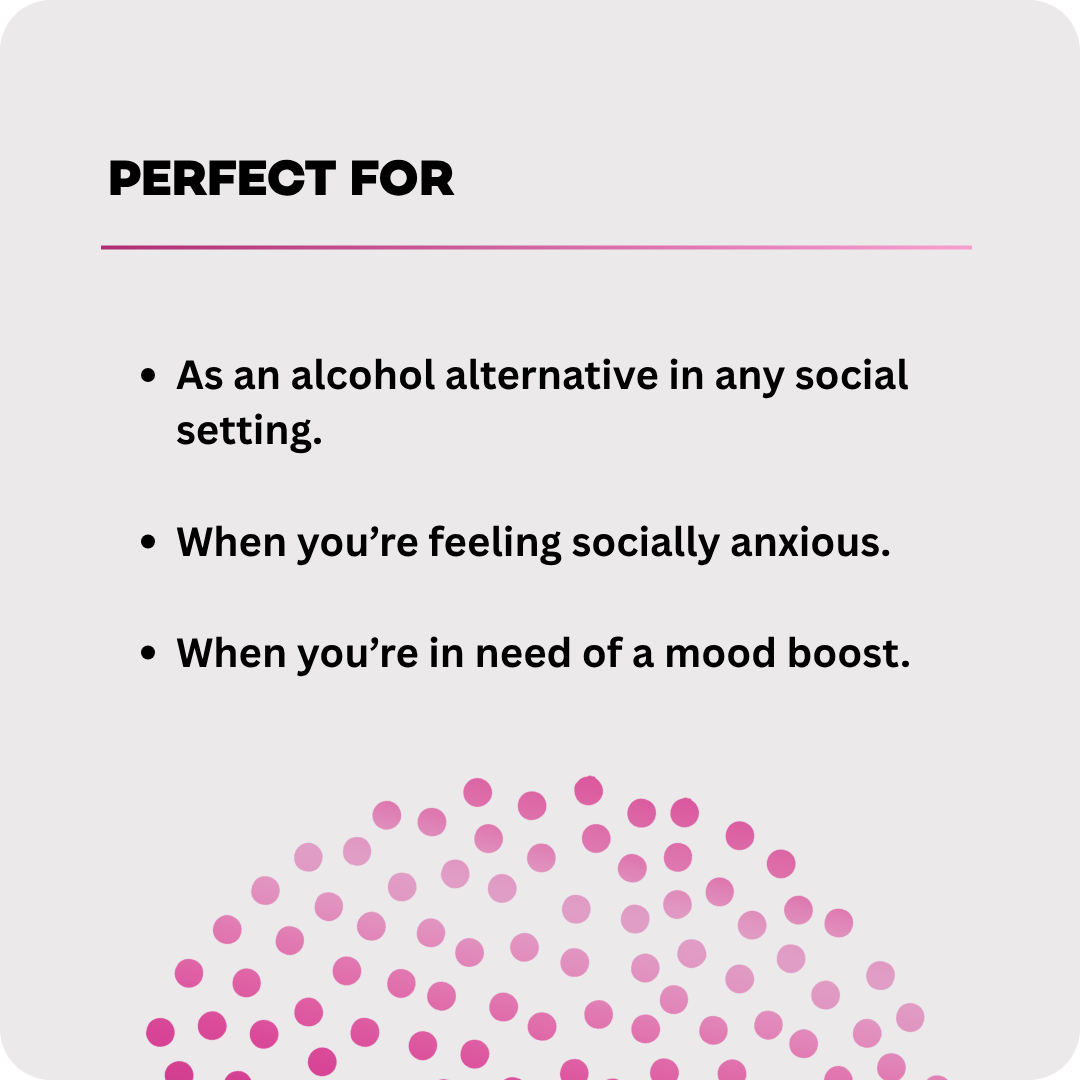 The perfect alcohol alternative. A sophisticated social tonic crafted to elevate mood, enhance confidence, and inspire genuine connection.